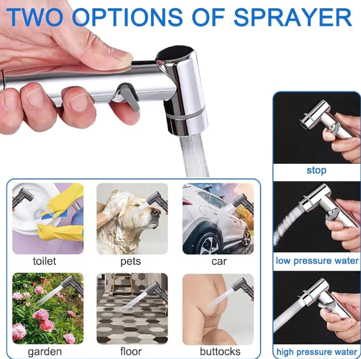 Amplias aplicaciones: los kits de pulverización de mano también son adecuados para pulverizadores de pañales de tela para bebés, duchas de mascotas, pulverizadores de flores, limpiadores de inodoros, limpieza de suelos y mucho más. Encontrarás todos los usos de este kit de spray para bidé cuando lo consigas